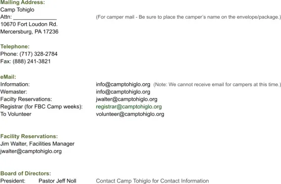 © 1979-2026 Fellowship of Bible Churches, Inc. • Camp Tohiglo. Camp Tohiglo is owned & operated by the Fellowship of Bible Churches, Inc.
